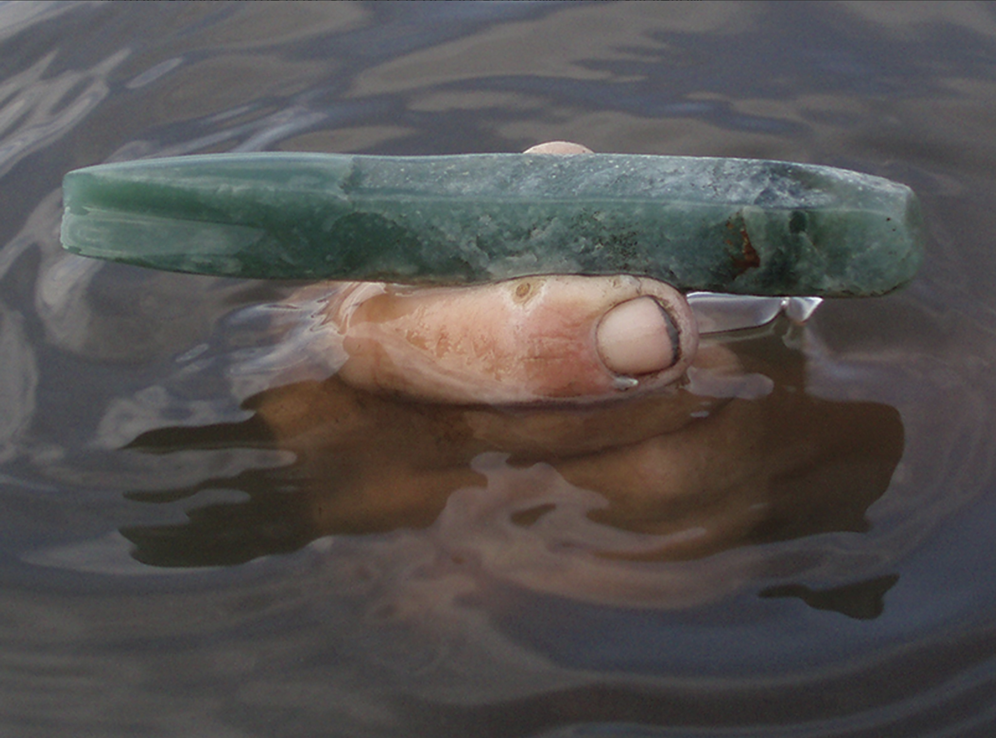 The jadeite gouge after discovery (photograph by Heather McKillop).
